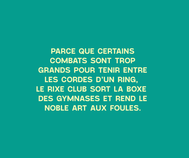 Club de boxe. Organisateur d'événements. Réduire la distance entre les gens, un coup à la fois.